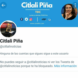 Pues una de tantas muestras que el Crimen Organizado Antorchista es buena para criticar y mala para recibir críticas o señalamientos, lo demuestra la Antorchista Citlali de Canal 6 Ixtapaluca al bloquearnos en Twitter tas señalamientos de sus acciones en el grupo Criminal al que pertenece.